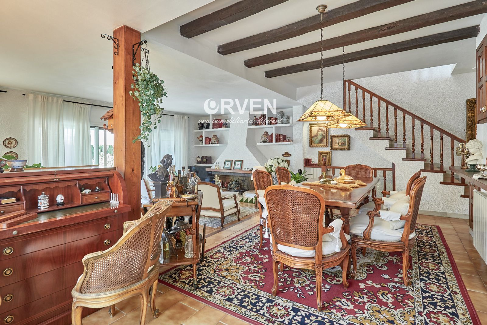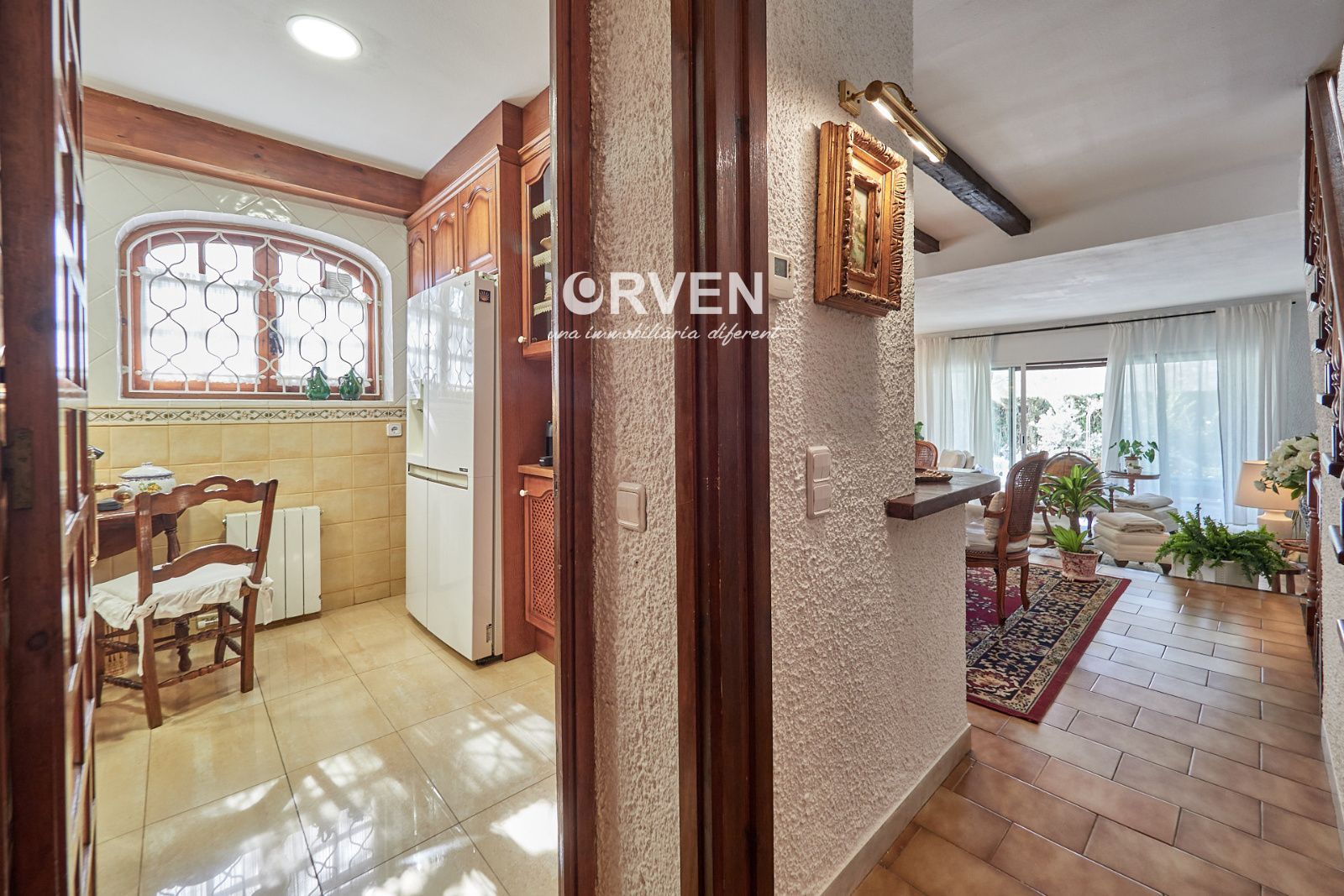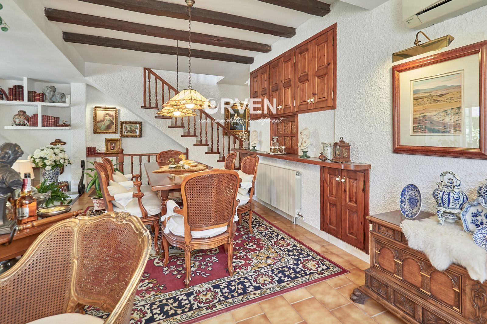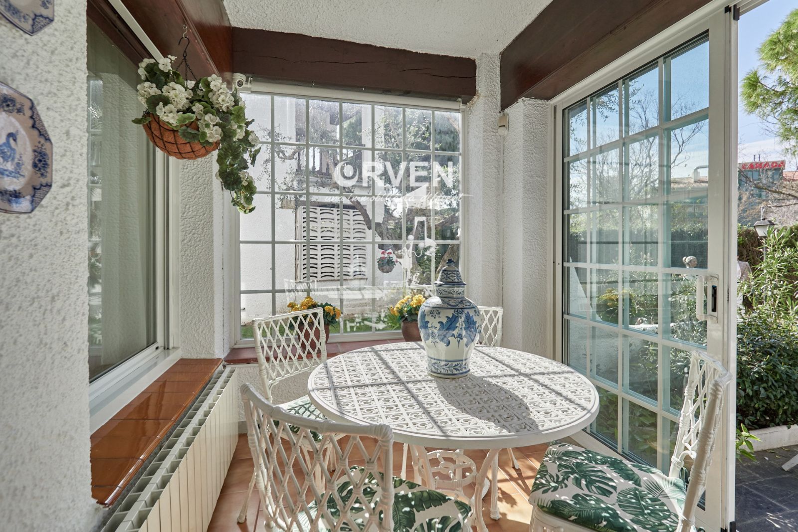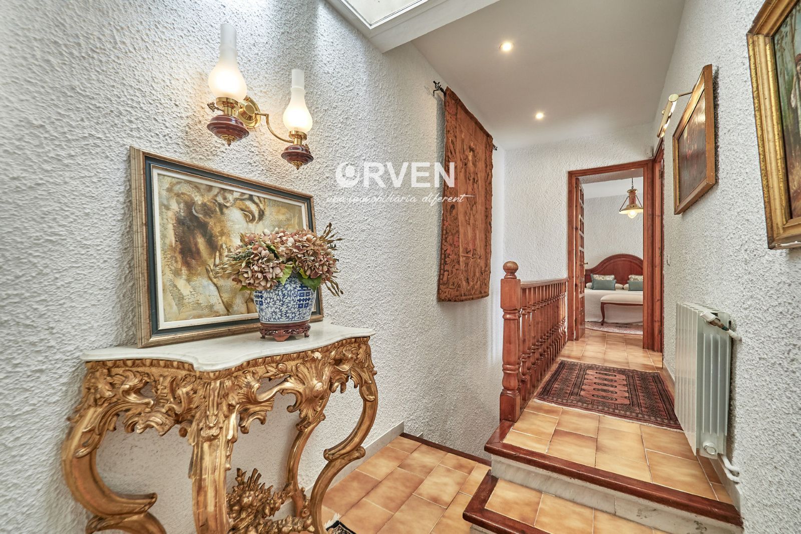 La distribución está pensada para aprovechar el espacio al máximo. En la primera planta nos encontramos con una bonita cocina amueblada y equipada con un estilo rústico y moderno acorde al estilo de la vivienda, un baño completo y un estiloso y amplio salón comedor a dos niveles ideales para crear dos ambientes perfectos ( sala de estar y zona comedor) con chimenea , desde este accedemos a una terraza con cerramiento de aluminio que nos da la opción de disfrutarla tanto en verano como en invierno y un pequeño y acogedor jardín. En la segunda planta nos encontramos con tres habitaciones dobles todas ellas exteriores con un bonito estilo cada uno. La principal es suite con salida a terraza en la que nos encontramos con un lavadero. Las otras dos estancias acceden a un baño común completo y una de ellas tiene salida a una pequeña terraza. Los armarios empotrados en todas las habitaciones facilitan el orden y almacenamiento de los espacios. La vivienda, al ser esquinera y toda exterior, cuenta con mucha luz natural. Dos chimeneas aportan calidez en las estaciones más frías mientras que el aire acondicionado, y la calefacción radial a gas natural, mantienen una climatización agradable durante todo el año. A la planta semi sótano accedemos desde el comedor y nos sorprende su amplio espacio. Un salón de unos 50m² y tres pequeñas habitaciones ó zonas de almacenamiento. Ideal para reuniones con amigos y familiares.