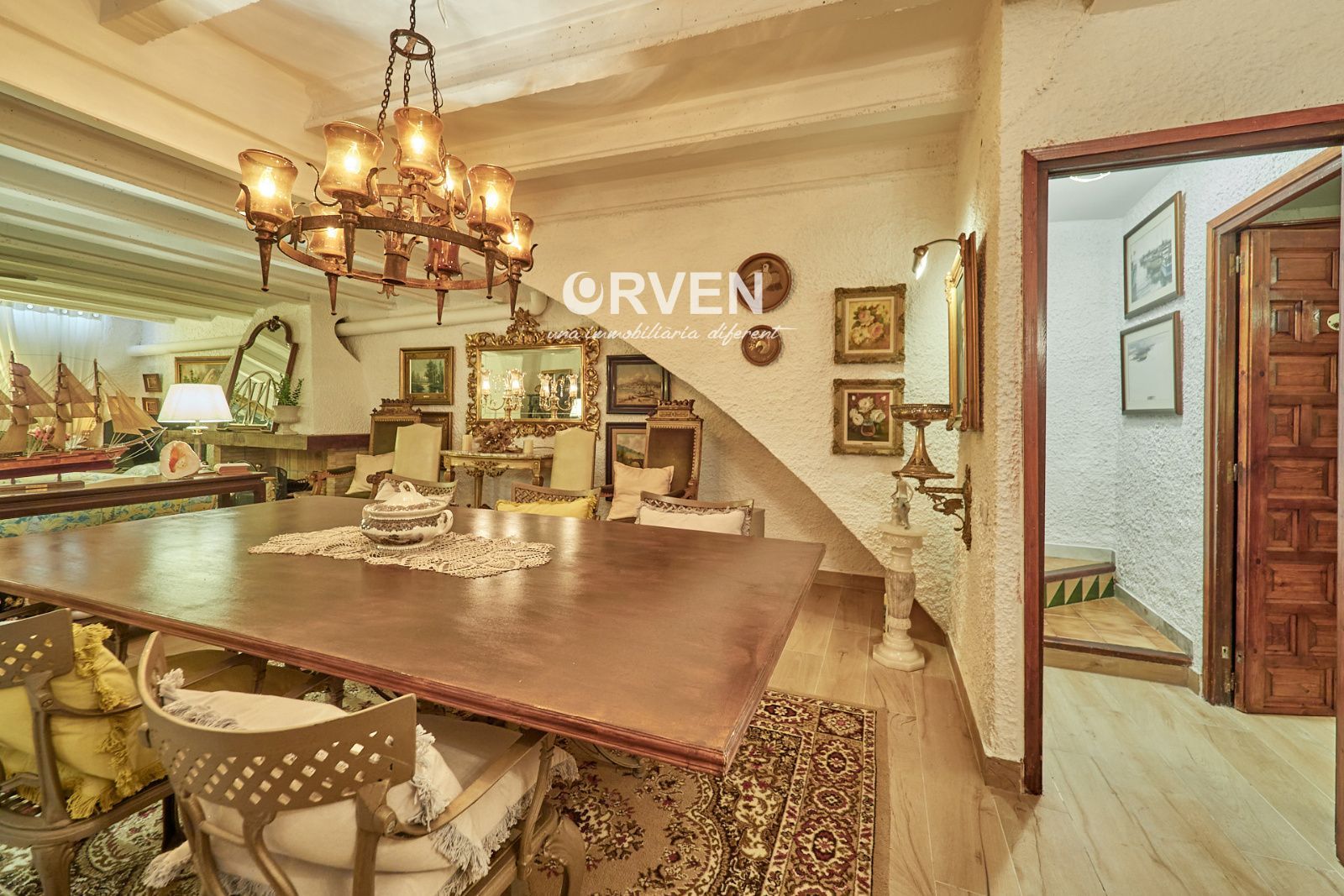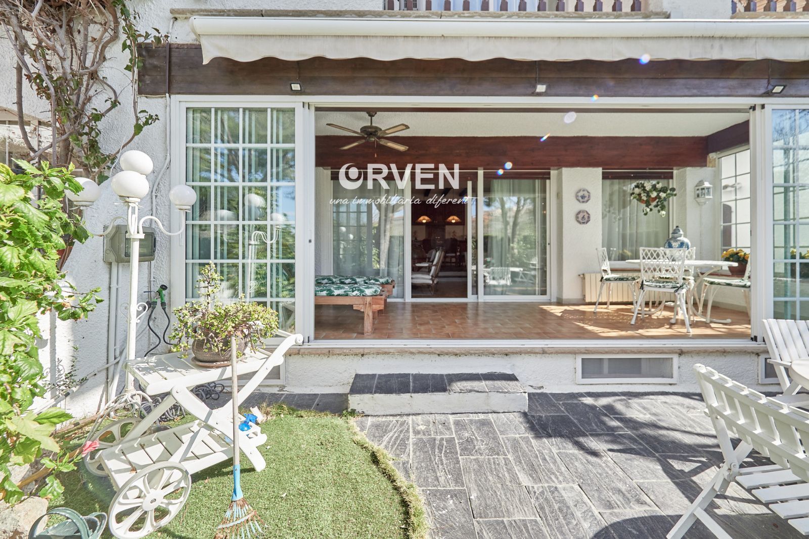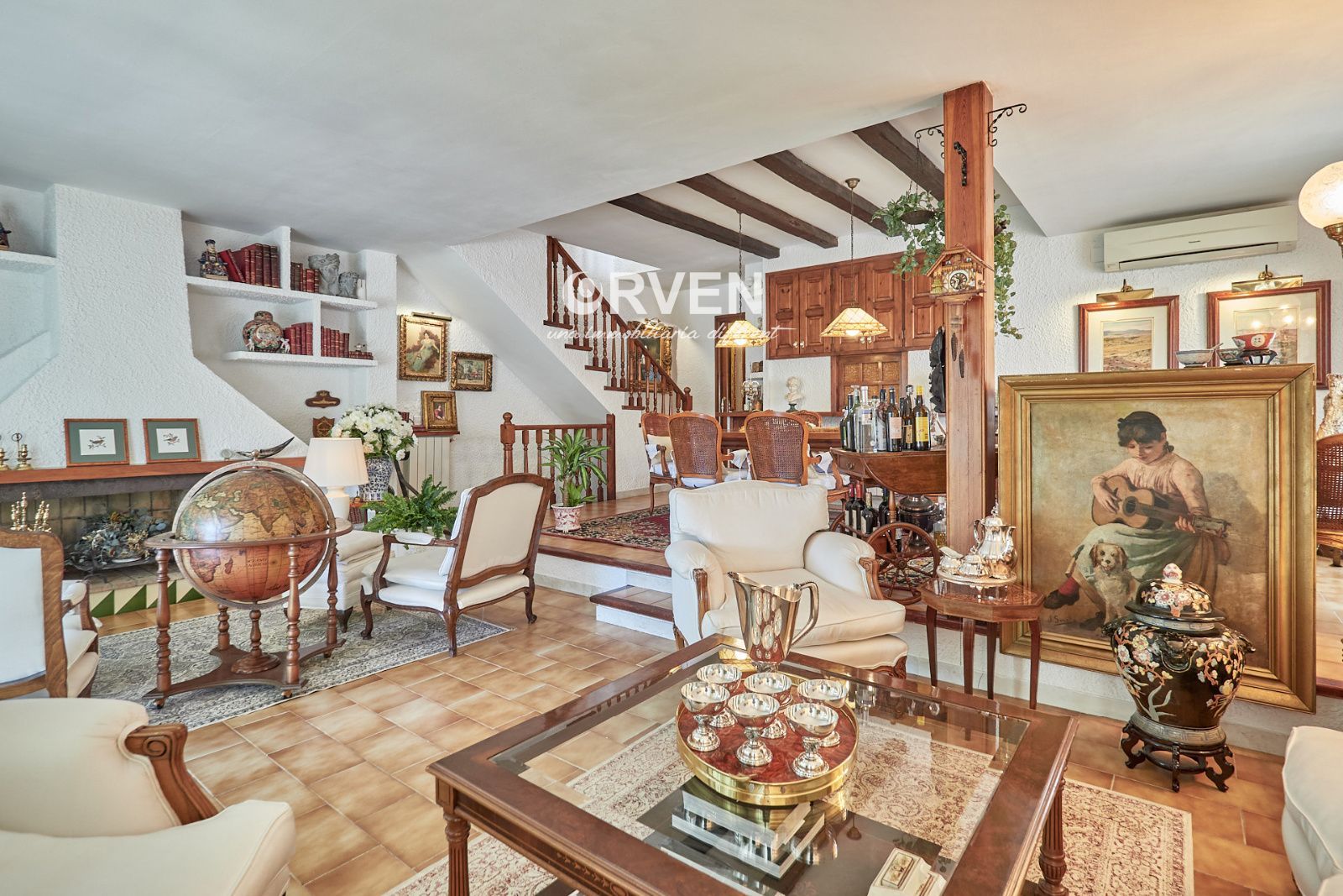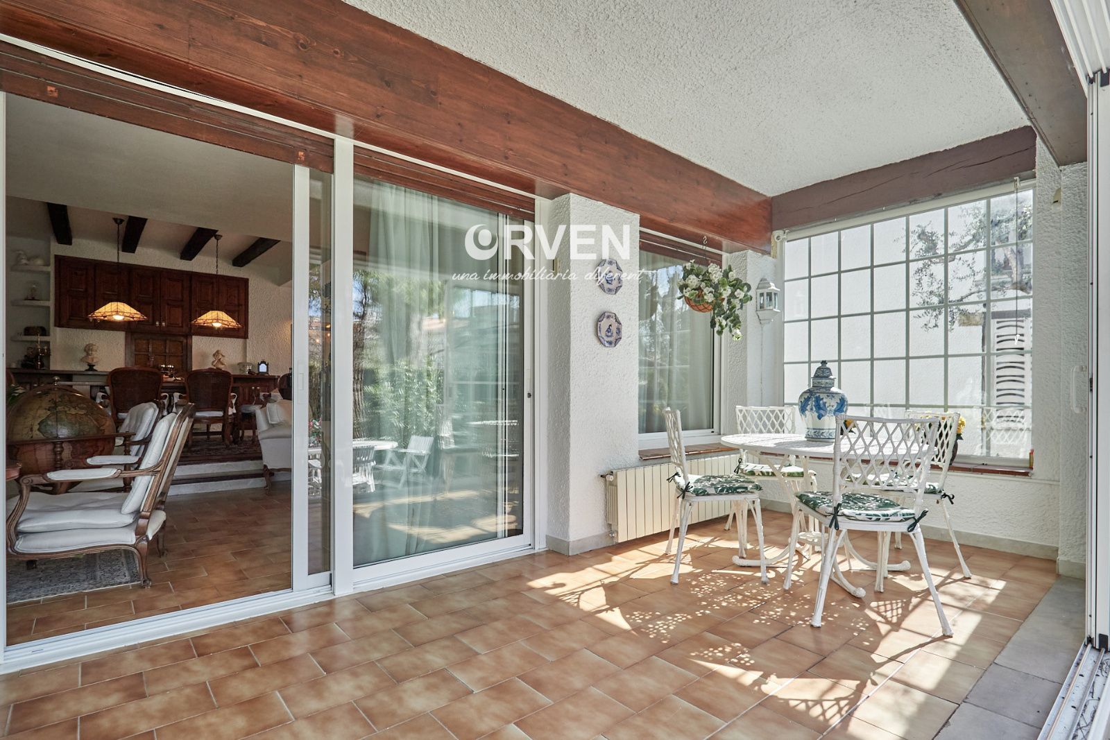 La distribución está pensada para aprovechar el espacio al máximo. En la primera planta nos encontramos con una bonita cocina amueblada y equipada con un estilo rústico y moderno acorde al estilo de la vivienda, un baño completo y un estiloso y amplio salón comedor a dos niveles ideales para crear dos ambientes perfectos ( sala de estar y zona comedor) con chimenea , desde este accedemos a una terraza con cerramiento de aluminio que nos da la opción de disfrutarla tanto en verano como en invierno y un pequeño y acogedor jardín. En la segunda planta nos encontramos con tres habitaciones dobles todas ellas exteriores con un bonito estilo cada uno. La principal es suite con salida a terraza en la que nos encontramos con un lavadero. Las otras dos estancias acceden a un baño común completo y una de ellas tiene salida a una pequeña terraza. Los armarios empotrados en todas las habitaciones facilitan el orden y almacenamiento de los espacios. La vivienda, al ser esquinera y toda exterior, cuenta con mucha luz natural. Dos chimeneas aportan calidez en las estaciones más frías mientras que el aire acondicionado, y la calefacción radial a gas natural, mantienen una climatización agradable durante todo el año. A la planta semi sótano accedemos desde el comedor y nos sorprende su amplio espacio. Un salón de unos 50m² y tres pequeñas habitaciones ó zonas de almacenamiento. Ideal para reuniones con amigos y familiares.