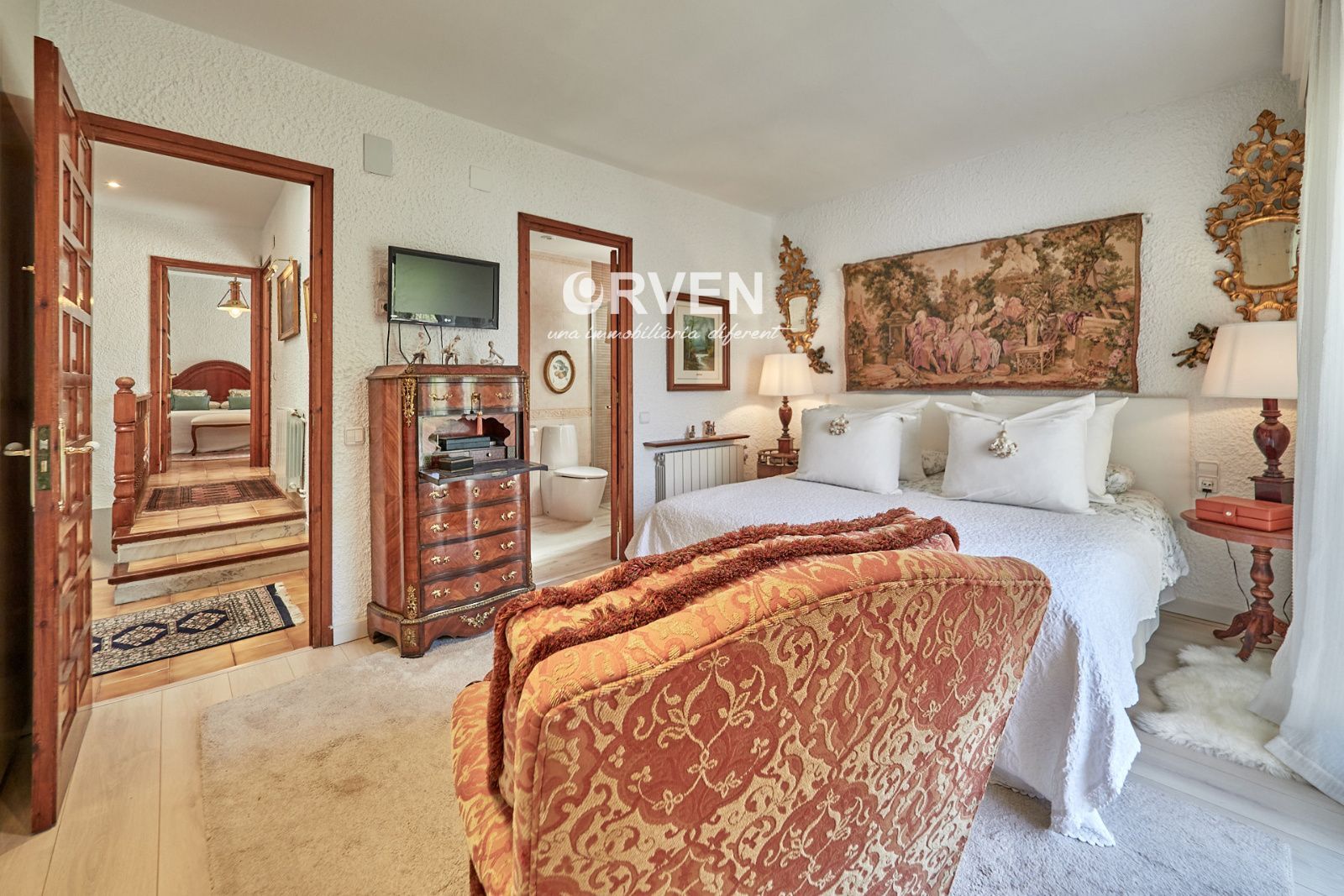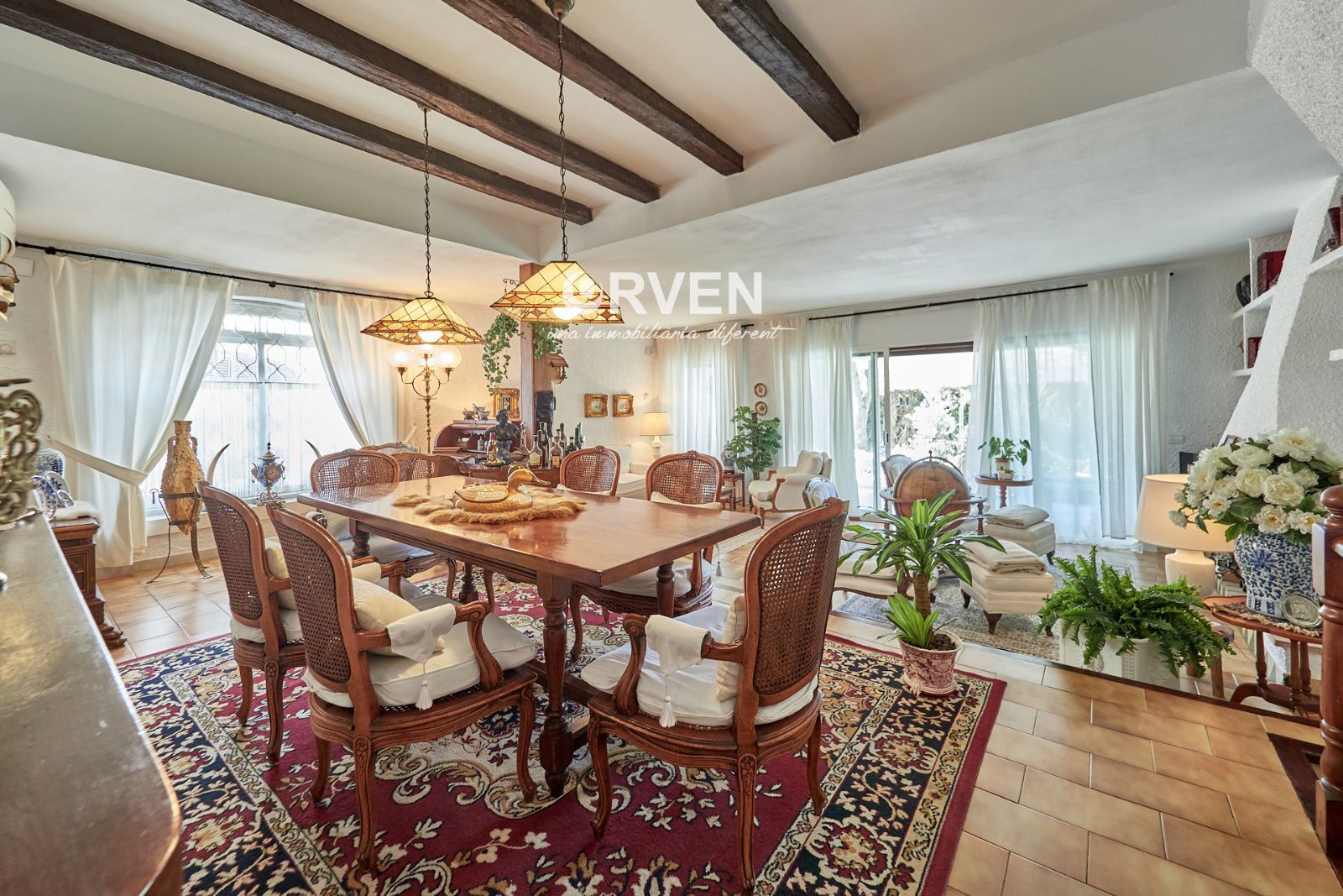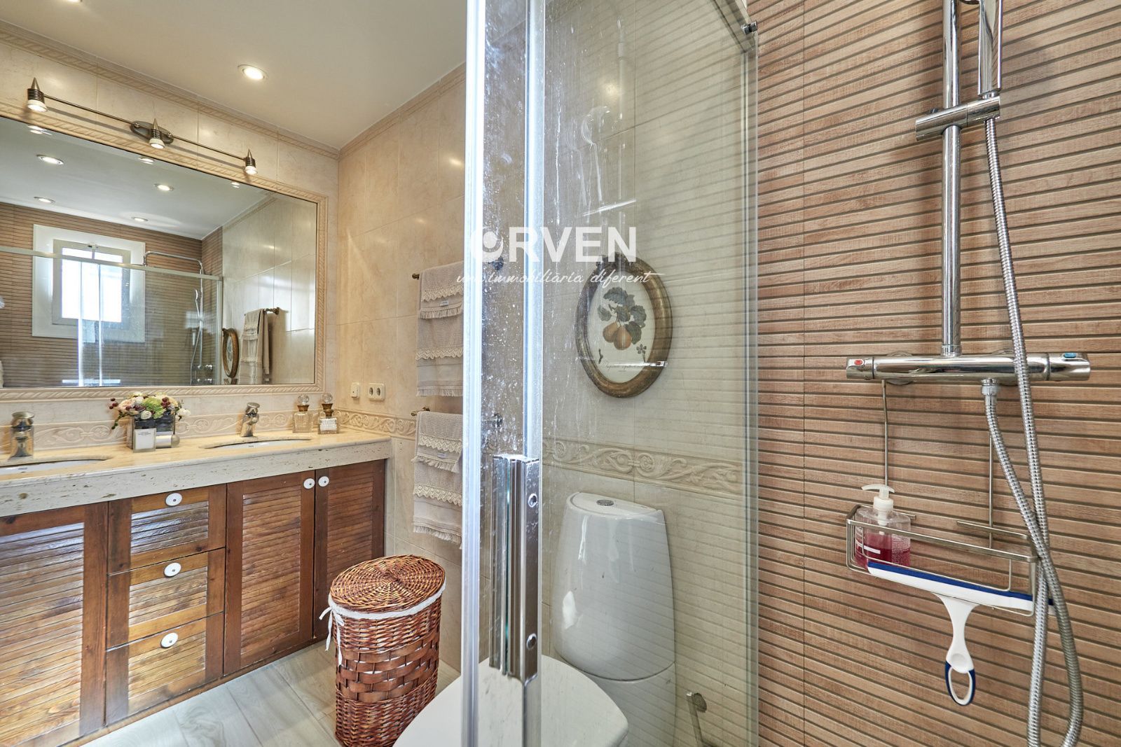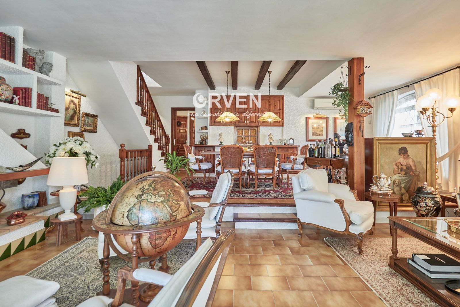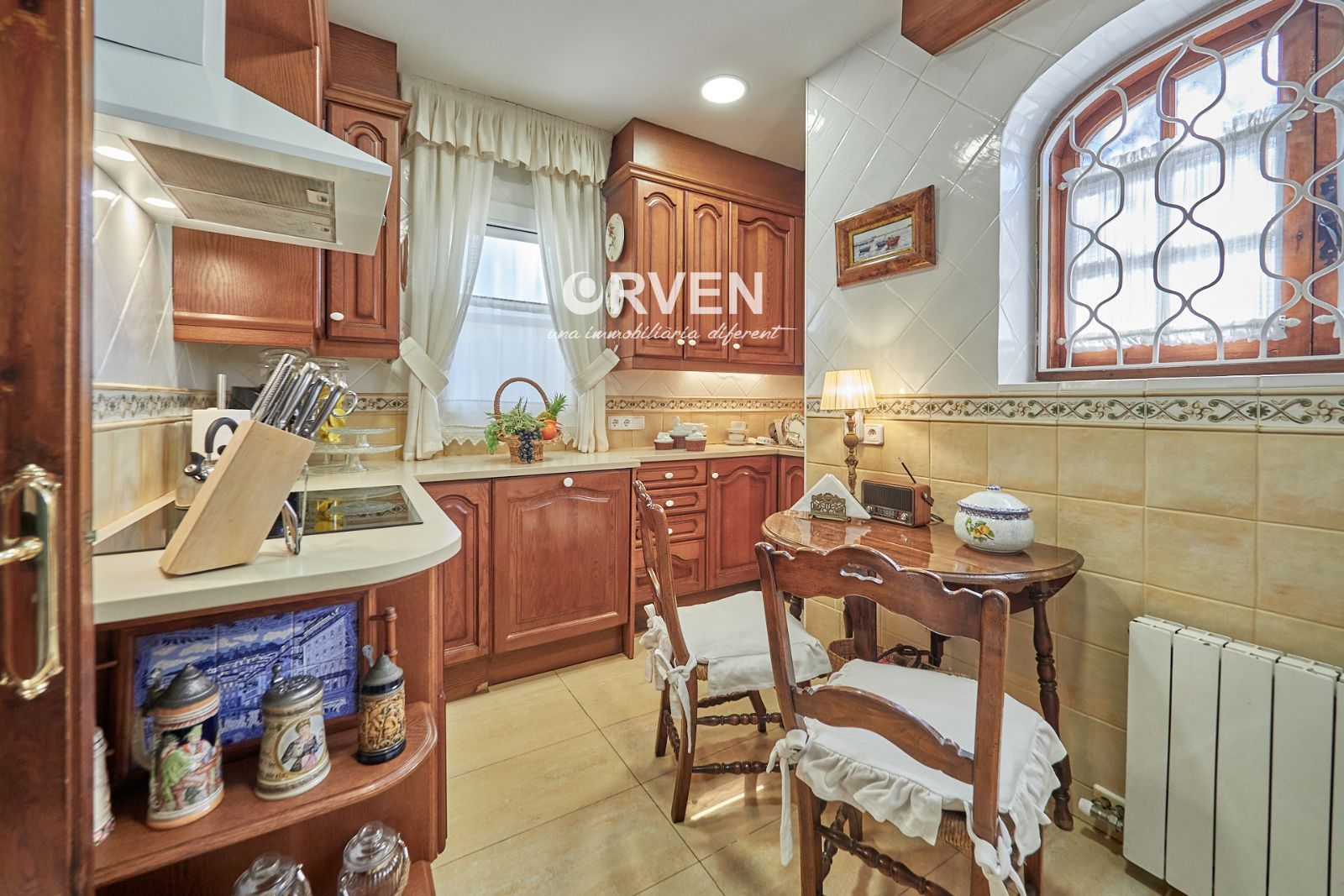 La distribución está pensada para aprovechar el espacio al máximo. En la primera planta nos encontramos con una bonita cocina amueblada y equipada con un estilo rústico y moderno acorde al estilo de la vivienda, un baño completo y un estiloso y amplio salón comedor a dos niveles ideales para crear dos ambientes perfectos ( sala de estar y zona comedor) con chimenea , desde este accedemos a una terraza con cerramiento de aluminio que nos da la opción de disfrutarla tanto en verano como en invierno y un pequeño y acogedor jardín. En la segunda planta nos encontramos con tres habitaciones dobles todas ellas exteriores con un bonito estilo cada uno. La principal es suite con salida a terraza en la que nos encontramos con un lavadero. Las otras dos estancias acceden a un baño común completo y una de ellas tiene salida a una pequeña terraza. Los armarios empotrados en todas las habitaciones facilitan el orden y almacenamiento de los espacios. La vivienda, al ser esquinera y toda exterior, cuenta con mucha luz natural. Dos chimeneas aportan calidez en las estaciones más frías mientras que el aire acondicionado, y la calefacción radial a gas natural, mantienen una climatización agradable durante todo el año. A la planta semi sótano accedemos desde el comedor y nos sorprende su amplio espacio. Un salón de unos 50m² y tres pequeñas habitaciones ó zonas de almacenamiento. Ideal para reuniones con amigos y familiares.